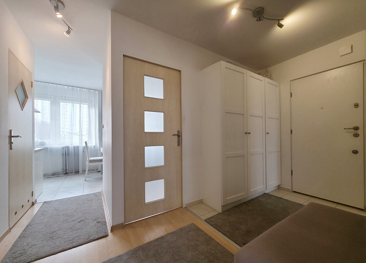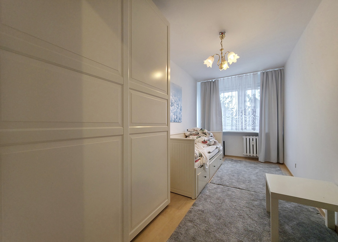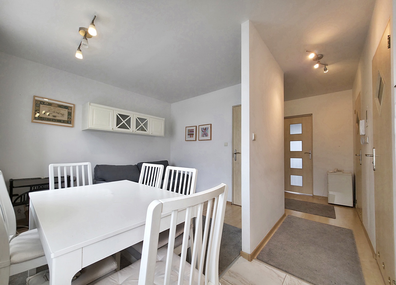Mieszkanie środkowe dwustronne - rozkładowe, umeblowane i wyposażone. W salonie znajduję się wyjście na balkon. Sypialnie otworzono na kuchnie, dzięki czemu zwiększono przestrzeń i przystosowano ją pod jadalnie. Kuchnia wnękowa z oknem, wyposażona w lodówkę, okap, piekarnik, kuchenkę gazową. W łazience znaleźć można, wannę oraz pralkę. Nieruchomość znajduję się w świetnie skomunikowanej części miasta. Lokalizacja idealna dla rodzin lub par, ze względu na bliskość szkół, czy uczelni, a także dobrą komunikację miejską z centrum.