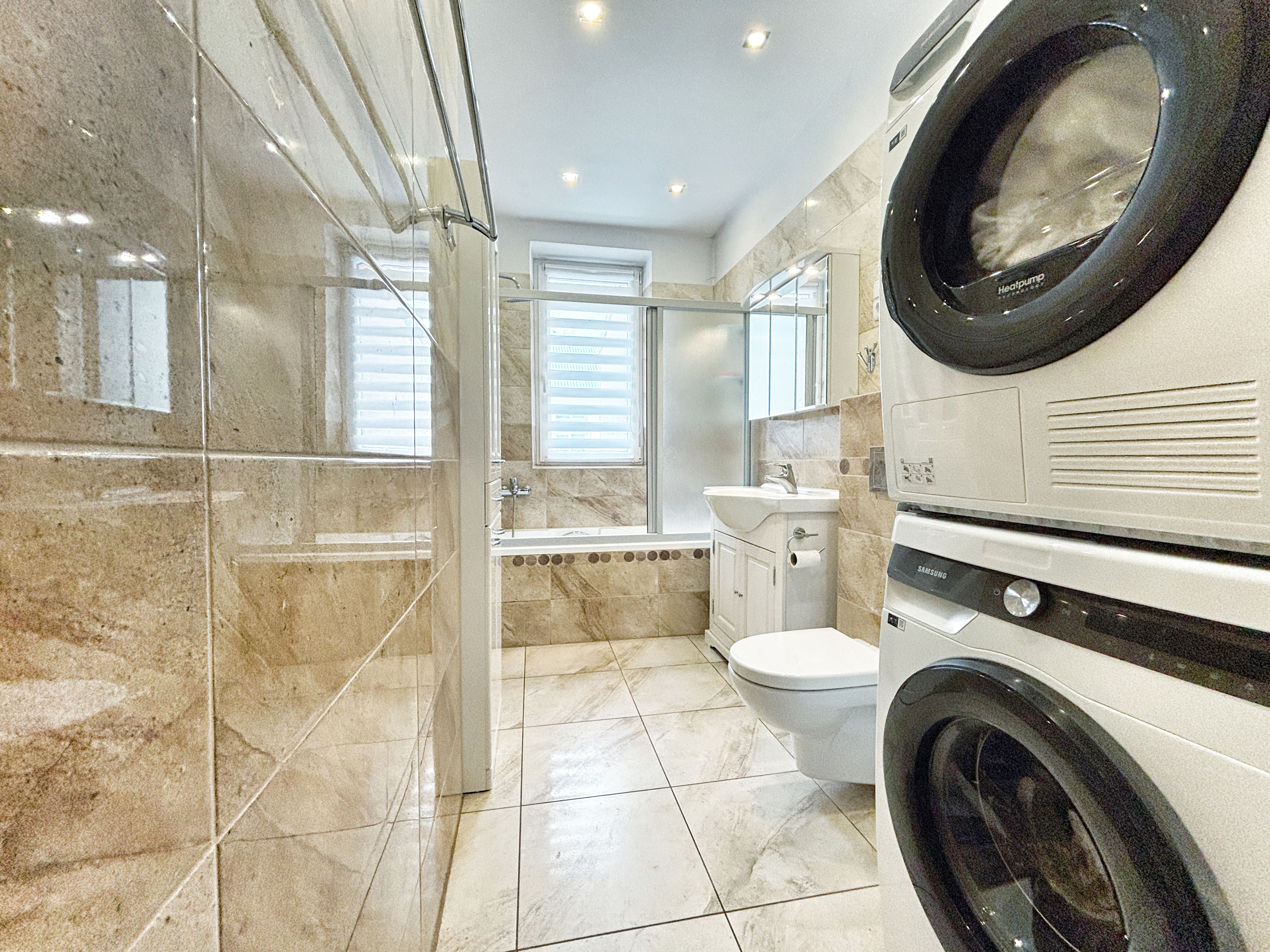 - Ogrzewanie: Nowoczesny piec dwufunkcyjny z termostatem sterowanym przez Wi-Fi.