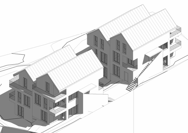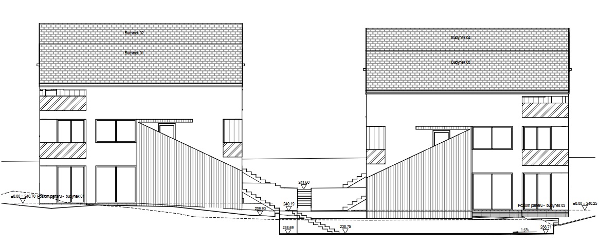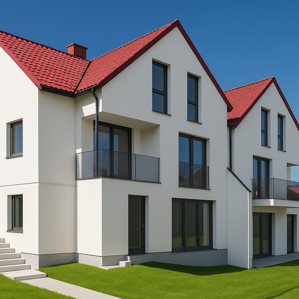 4 budynki dwulokalowe (bliźniaki) – łącznie 8 mieszkań