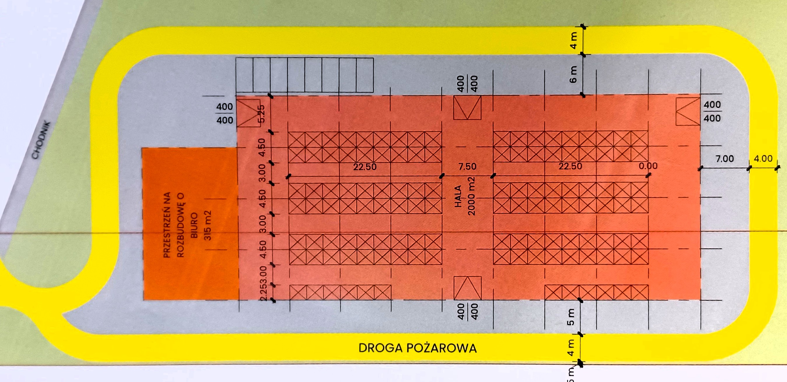 możliwość realizacji hali wysokiego składowania o pow. ok. 6 000 m²,