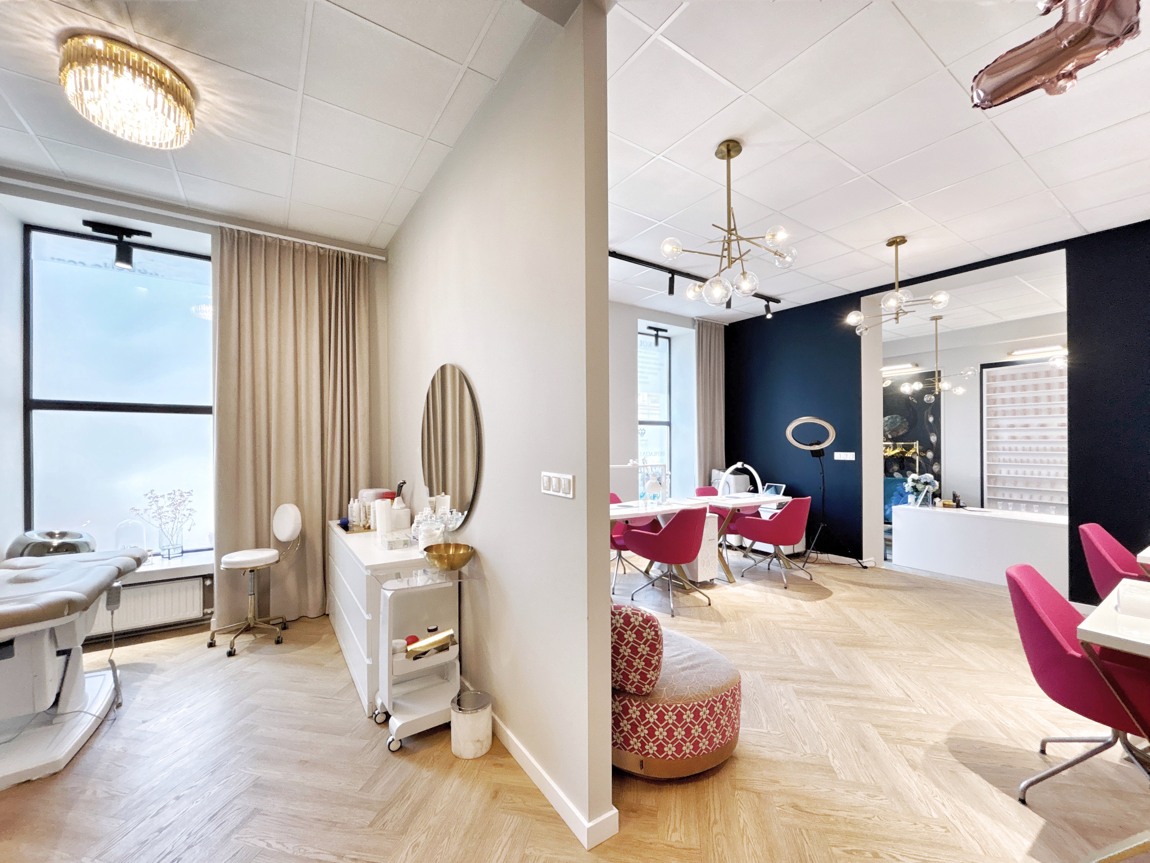 - dużego pomieszczenia w szeroką witryną wzdłuż ulicy