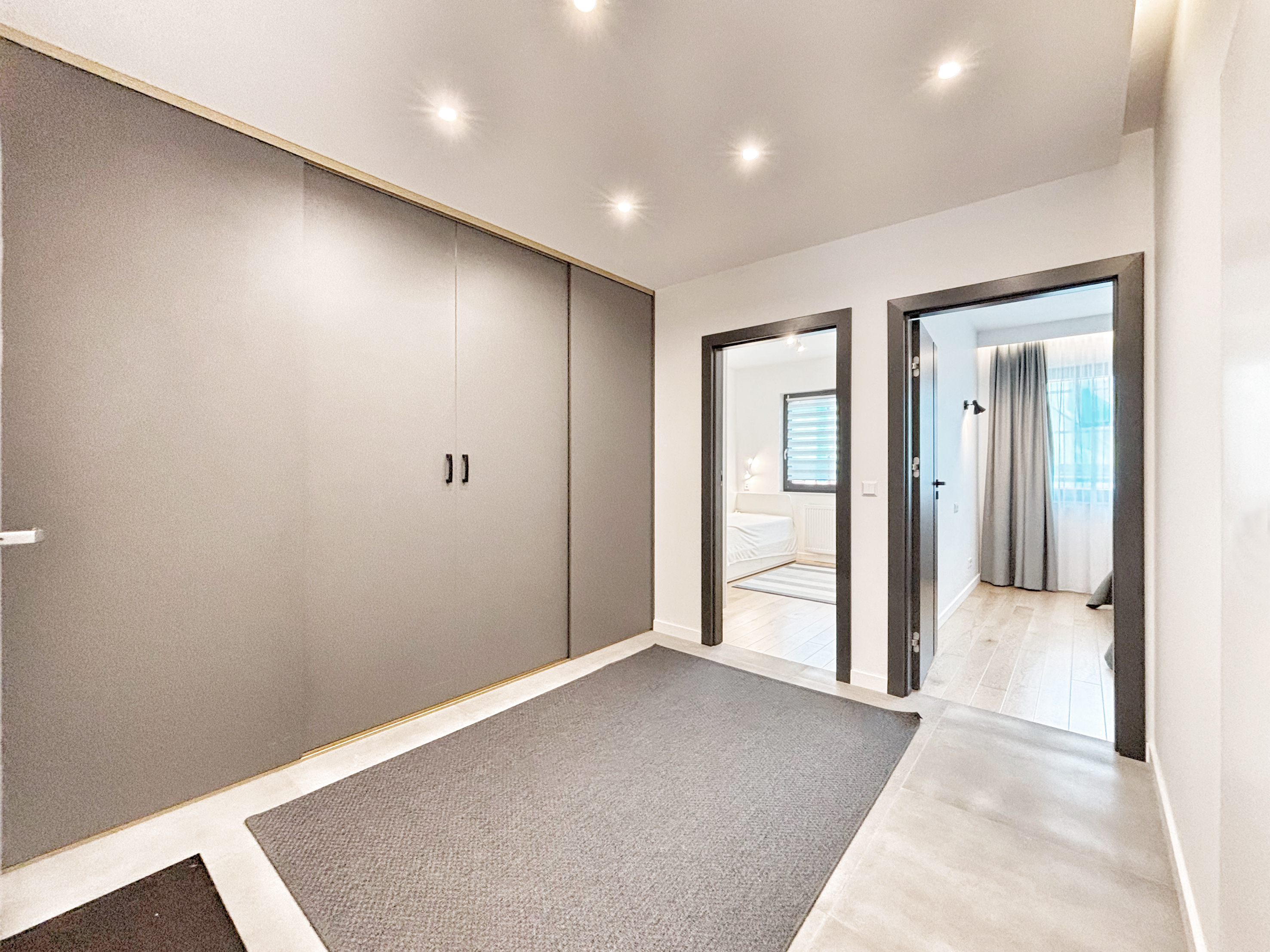 - Przedpokój z dużą garderobą: 12,37 m² – funkcjonalna przestrzeń z mnóstwem miejsca do przechowywania.