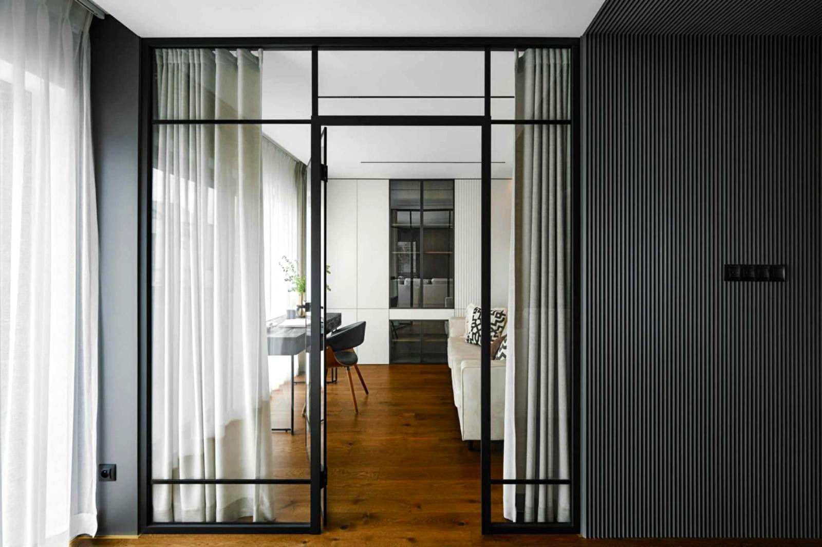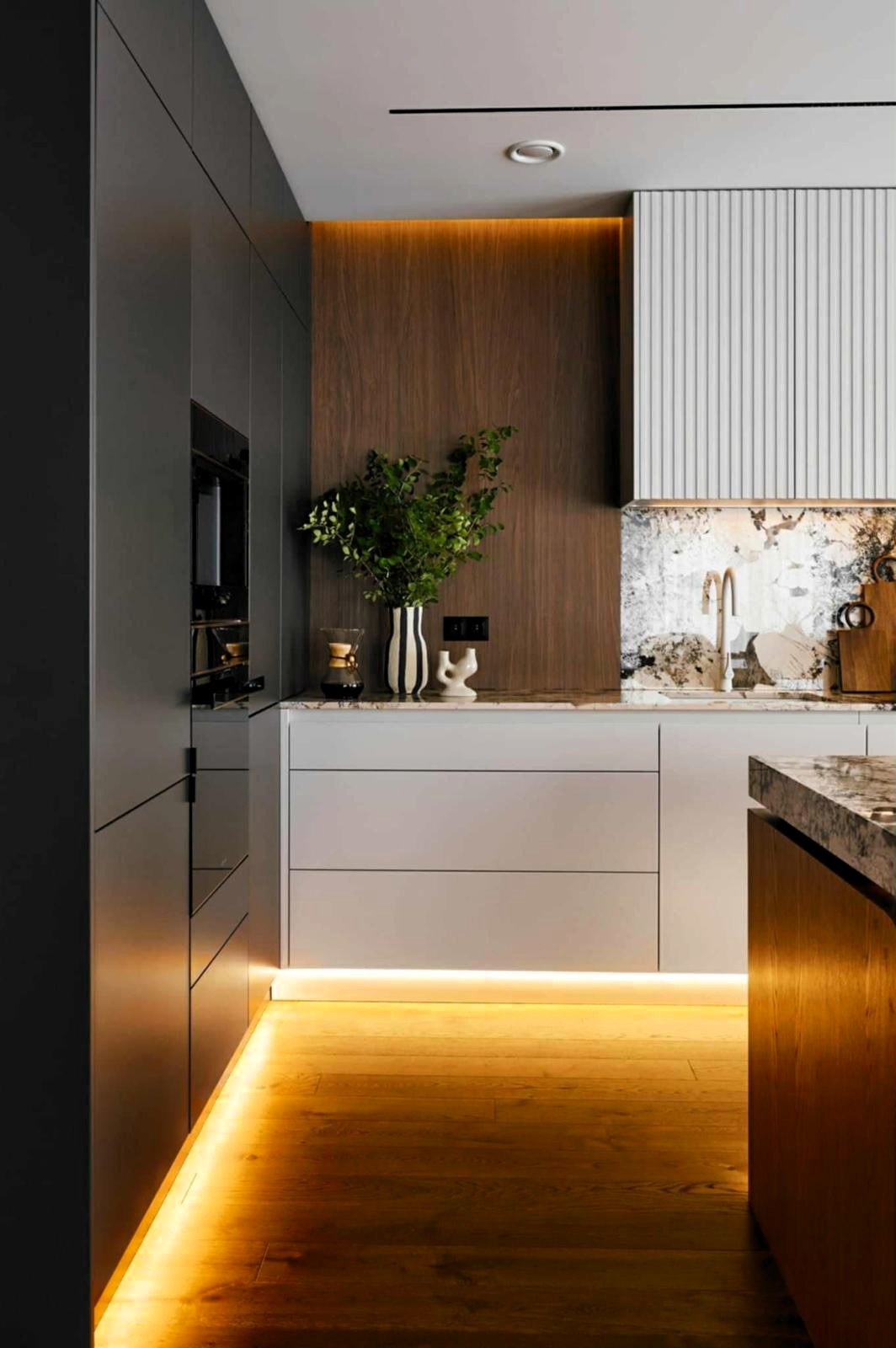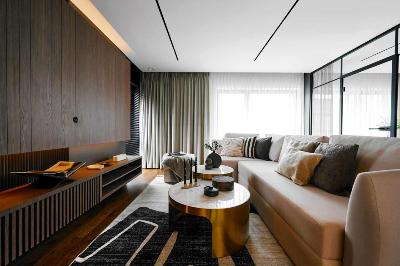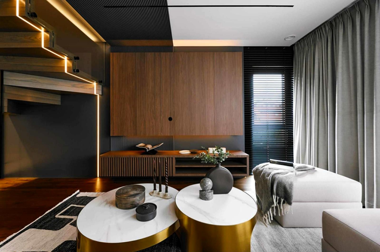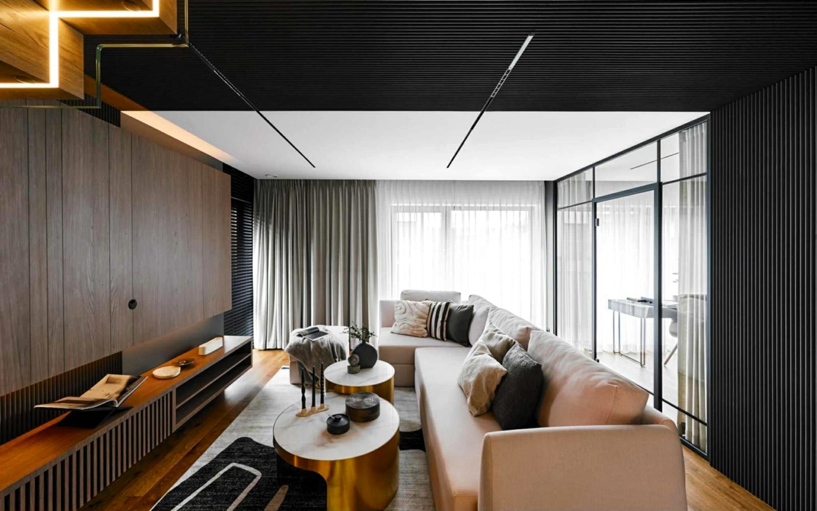 Apartament o powierzchni 151 m² został zaprojektowany jako komfortowa, dwupoziomowa przestrzeń, która łączy nowoczesny design z funkcjonalnością.