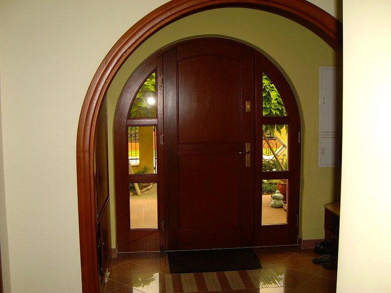 Nieruchomość położona na skraju osiedla nowych domów jednorodzinnych. Dojazd do osiedla drogą asfaltową. Plac manewrowy przed garażem wyłożony kostką granitową. Działka w całości ogrodzona – od frontu mur lany z elementami metolowami (kute kraty stalowe, ocynkowane i malowane proszkowo), z pozostałych stron siatka stalowa na fundamentach o podwyższonej wysokości (również malowana proszkowo). Brama wjazdowa, bramy garażowe oraz rolety zewnętrzne (zarówno w oknach i na drzwiach) zamykane elektryczne. Całość powierzchnia działki bardzo ładnie zagospodarowana na cele rekreacyjne – ładne nasadzenia oraz dodatkowo domek letniskowy z wydzielonym miejscem do grilowania. Na działce zamontowane automatyczne zraszacze. Z salonu oraz jadalni wyjścia na tarasy wykonane z kamienia Wanga. Dom wybudowany według projektu firmy Studio Atrium GLX35. Do budowy użyto wyłącznie materiałów najwyższej jakości. Dach kryty dachówką ceramiczną pokrytą angobą, rynny miedziane. Drzwi zewnętrzne i stolarka okienna drewniana – mahoń, drzwi wewnętrzne oraz schody dębowe. W środku na podłogach parkiet jesionowy oraz włoskie kafle. Powierzchnia całkowita wynosi ponad 380m2, a użytkowa ok. 210 m2. Na parterze znajduje się przestrzonny salon z kominkiem, duża zabudowana meblami pod wymiar (czereśnia) wraz ze sprzętami firmy Siemens kuchnia połączona z jadalnią, spiżarnia, kotłownia z pralnią, pokój gościnny, łazienka z prysznicem i WC, oraz osobna toaleta. Na piętrze znajdują się trzy sypialnie, duża garderoba, przestronna łazienka z hydromasażami w wannie i kabinie prysznicowej, podwójną umywalką oraz znajdujące się nad garażem i łącznikiem pomieszczenie o powierzchni 63,4 m2 przeznaczone docelowo na salę ćwiczeń. Dodatkowo poprowadzono schody na poddasze i wygospodarowano tam dodatkowe pomieszczenie mogące służyć np. na gabinet. Dom ogrzewany gazem ziemnym – nowy, bardzo wydajny piec Viessmann. Ogrzewanie na dole i górze zarówno tradycyjne oraz podłogowe. Nieruchomość posiada system centralnego odkurzacza, system alarmowy oraz system monitoringu! Z głównym budynkiem łączy się za pomocą wiaty duży garaż na dwa samochody.