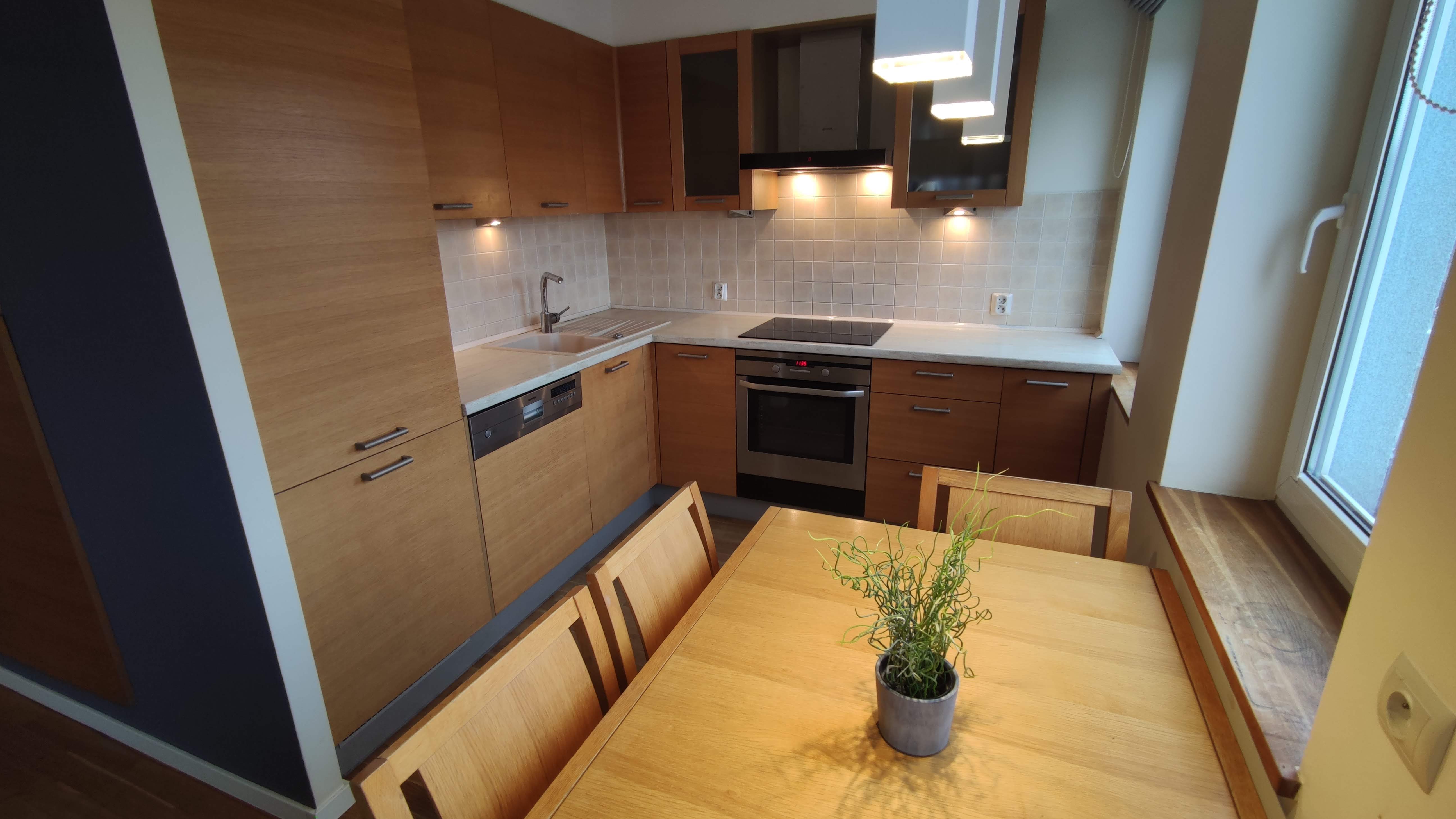 Na wyposażeniu: duża lodówka z zamrażarką, zmywarka Siemens, piekarnik AEG, nowa płyta indukcyjna BOSH, pralka. Podłoga drewniana olejowana.